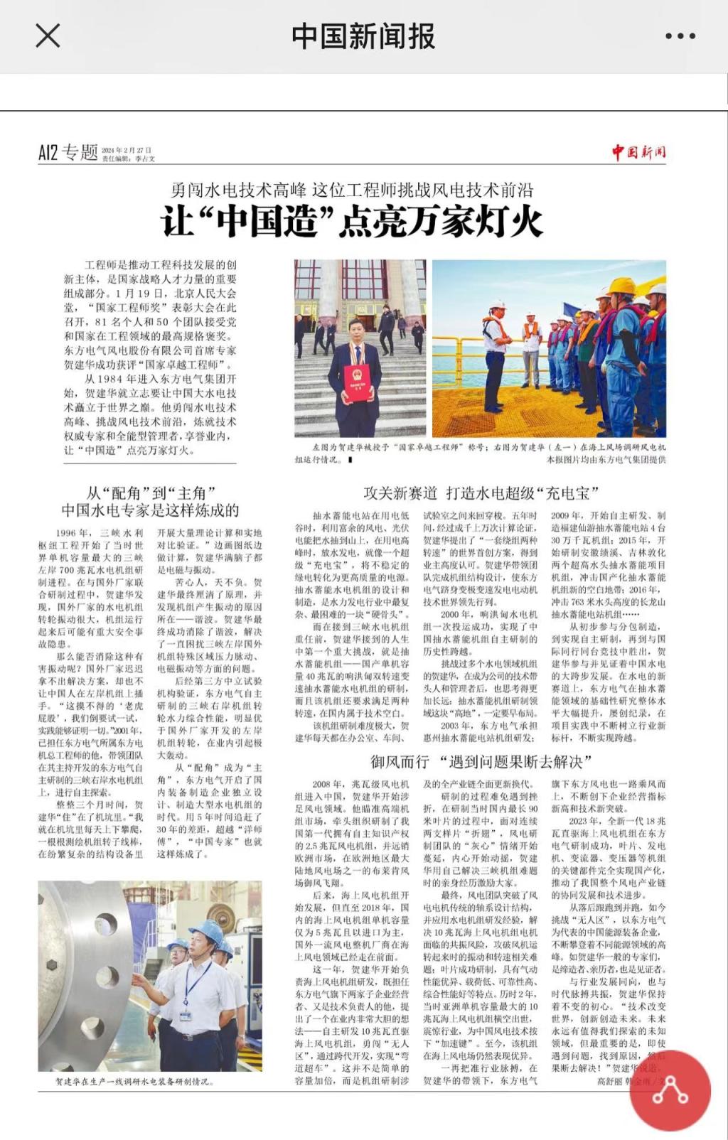 [中國新聞報]勇闖水電技術(shù)高峰 這位工程師挑戰(zhàn)風(fēng)電技術(shù)前沿 讓“中國造”點亮萬家燈火