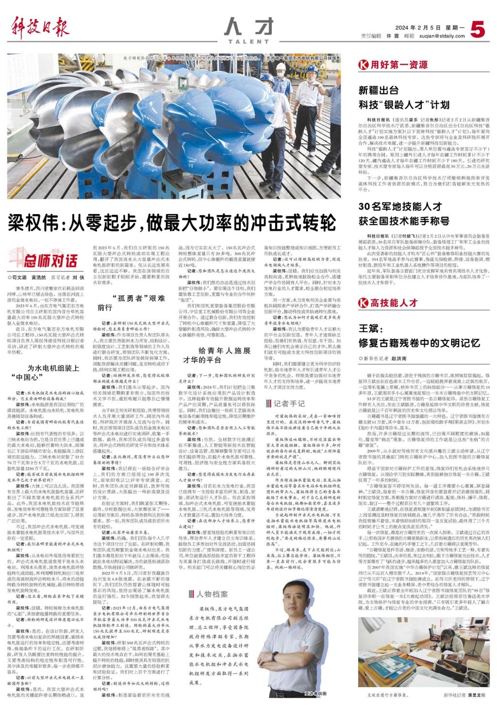 近日,東方電氣集團(tuán)東方電機(jī)有限公司總工程師、150兆瓦級(jí)大型沖擊式轉(zhuǎn)輪項(xiàng)目負(fù)責(zé)人梁權(quán)偉接受科技日?qǐng)?bào)記者采訪,講述了研制大型沖擊式轉(zhuǎn)輪的艱辛歷程。