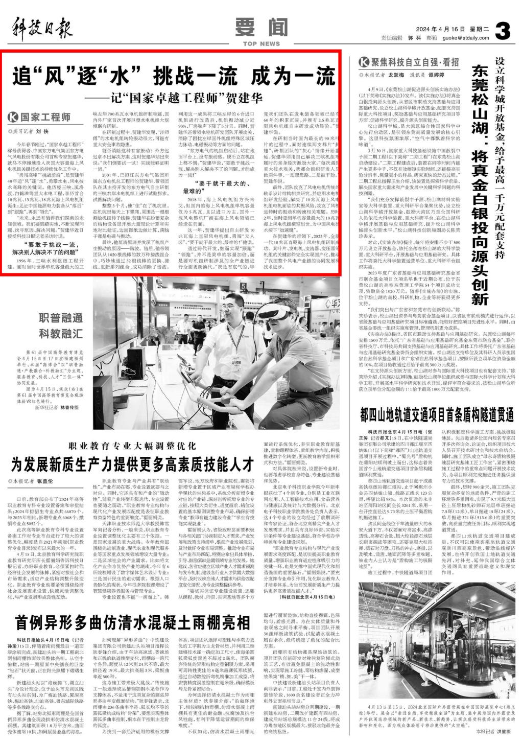 “未來,永遠(yuǎn)有值得我們探索的未知領(lǐng)域。我們要腳踏實(shí)地,不斷發(fā)現(xiàn)問題、找尋原因、解決問題。”賀建華近日接受科技日?qǐng)?bào)記者采訪時(shí)說。