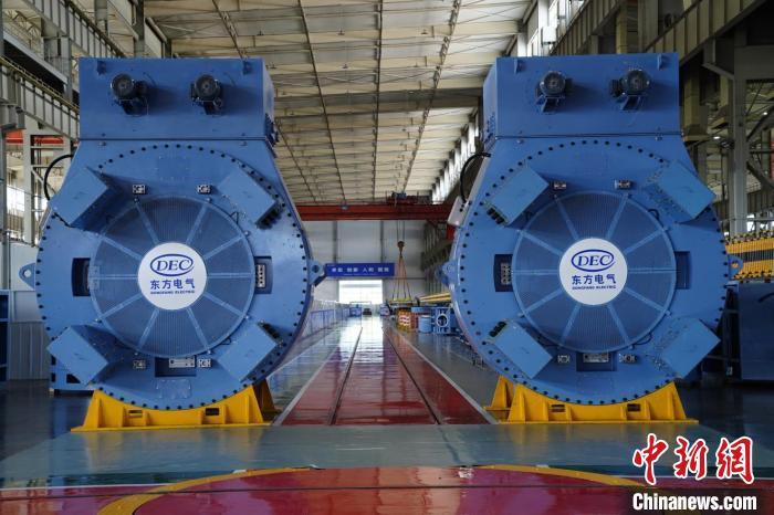 26兆瓦級海上風(fēng)力發(fā)電機組下線現(xiàn)場。中國東方電氣集團有限公司供圖