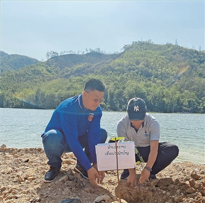 中老工作人員在老撾南歐江一級水電站培育樹苗。賽亞棒攝