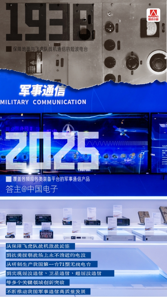 從保障飛虎隊(duì)?wèi)?zhàn)機(jī)激戰(zhàn)長空,到研制生產(chǎn)我國第一臺(tái)71型無線電臺(tái),再到實(shí)現(xiàn)短波通信、衛(wèi)星通信、超短波通信等多個(gè)關(guān)鍵領(lǐng)域突破,如今的軍事通信產(chǎn)品譜系正傲然支撐著中國向軍事強(qiáng)國昂首邁進(jìn)。