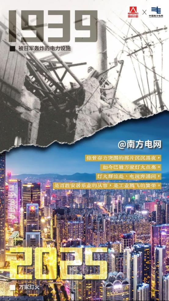 80年后的今天,城市農(nóng)村燈火徹夜通明。前輩們?cè)此朗刈o(hù)的電力火苗,以燎原之勢鐫刻下世界級(jí)灣區(qū)電網(wǎng)、直流輸電工程、“特高壓”國家名片等閃耀印記。燈火輝煌處、電流奔涌間,是百姓安居樂業(yè)的從容,是工業(yè)騰飛的繁榮!