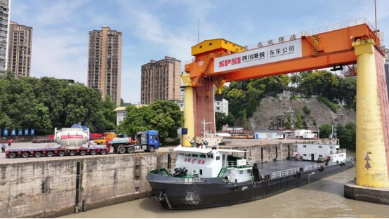 樂山大件碼頭作為四川大件運(yùn)輸水陸轉(zhuǎn)換樞紐,地處三江匯流下游,航道水深穩(wěn)定、江面寬闊,具備千噸級(jí)通航條件。自1995年為服務(wù)三峽樞紐工程興建以來,已成為長(zhǎng)江經(jīng)濟(jì)帶重要物流節(jié)點(diǎn)。利用碼頭配備的550噸橋式起重機(jī),球閥與中壓模塊將在這里完成吊裝轉(zhuǎn)運(yùn)的全過程?!安捎脴蚴狡鹬貦C(jī),是因?yàn)榇a頭固定軌道作業(yè)穩(wěn)定,能最大程度保障設(shè)備安全?!睎|方大件物流技術(shù)部技術(shù)經(jīng)理羅崎瑞介紹說,“單件設(shè)備上船后需要花1小時(shí)進(jìn)行加固作業(yè),確保航行中萬無一失?!?/p>