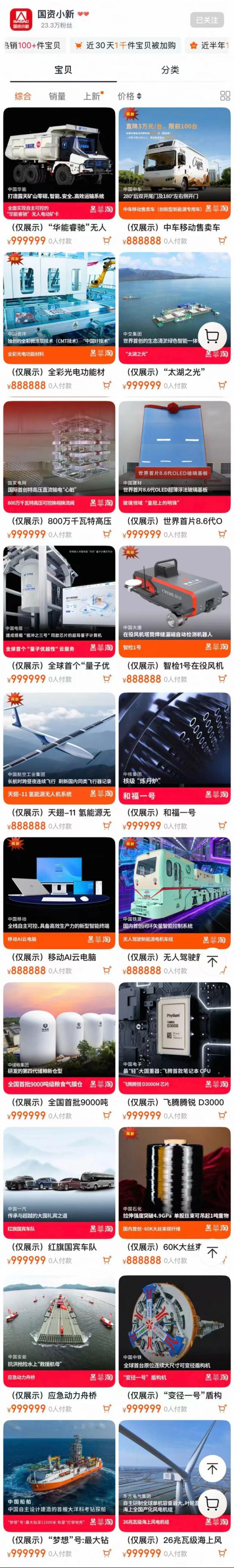 可以看到,今年“國資小新”在淘寶共上架20件大國重器,涉及信息技術、人工智能、航空航天、新能源、新材料、高端裝備、量子科技等多個領域。其中8件帶有“全球首個”或“全球之最”標簽、7件擁有“國內首個”或“國內之最”稱號。