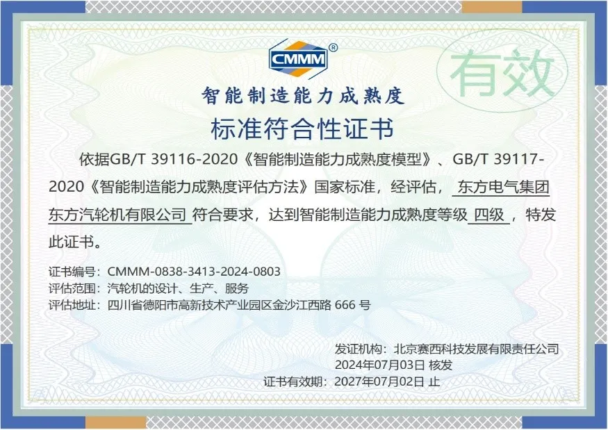 近日,東方電氣集團(tuán)所屬東方汽輪機(jī)成功通過(guò)工信部組織的數(shù)字化轉(zhuǎn)型成熟度四級(jí)現(xiàn)場(chǎng)評(píng)估(DTMM),這是繼今年5月通過(guò)智能制造能力成熟度四級(jí)評(píng)估之后又一里程碑。至此,東方汽輪機(jī)成為全國(guó)首批、行業(yè)首家達(dá)到智能制造成熟度與數(shù)字化轉(zhuǎn)型成熟度兩套國(guó)家標(biāo)準(zhǔn)體系四級(jí)認(rèn)證達(dá)標(biāo)企業(yè)。