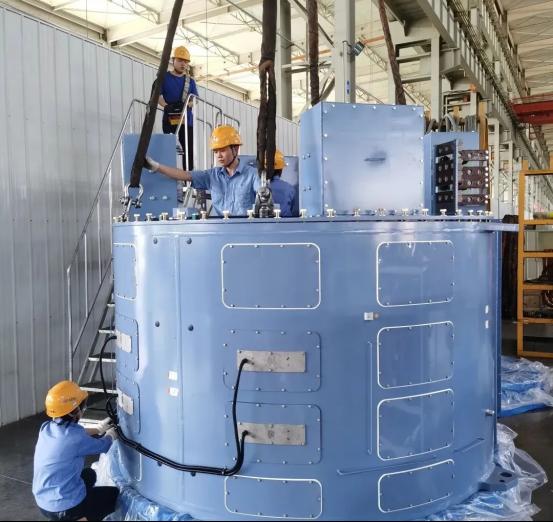 為了讓各工序“同頻共振”,就必須事先做好產(chǎn)線節(jié)拍的測(cè)算工作。董崢嶸帶著車(chē)間團(tuán)隊(duì)從優(yōu)化布局入手,他們把轉(zhuǎn)子裝配調(diào)到離動(dòng)平衡機(jī)最近的位置,來(lái)回轉(zhuǎn)運(yùn)時(shí)間節(jié)省1小時(shí);定子浸漆改用“三臺(tái)同浸”模式,生產(chǎn)效率提升33%的同時(shí)還降低了成本;轉(zhuǎn)子法蘭絕緣套筒換成分瓣式,每臺(tái)裝配時(shí)間縮短3小時(shí)。這些看似細(xì)微的調(diào)整,像給生產(chǎn)線打通了“任督二脈”。