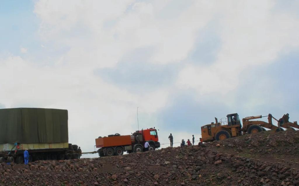 2014年6月,項目1號機的定子運輸牽動著所有人的心。由于當(dāng)?shù)氐缆废拗?,定子被分成兩瓣運輸,單瓣定子的運輸重量就高達150噸,高度超過5米。更揪心的是,最后100公里的進場路況極其復(fù)雜。彼時正值雨季,盡管前期項目組用雙腳“丈量”了這100公里的道路,精確測量了每一個角度和轉(zhuǎn)彎半徑。但經(jīng)雨水沖刷后,道路損毀嚴(yán)重,原定的運輸方案根本行不通。