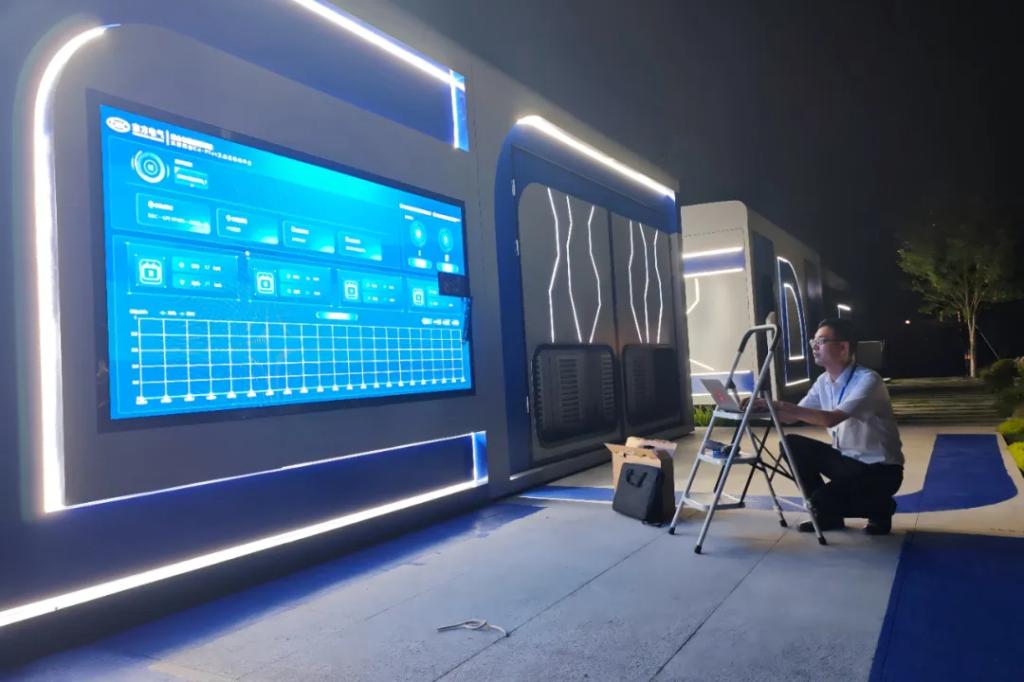 團隊成員調(diào)試集團總部園區(qū)綠色低碳智慧系統(tǒng)