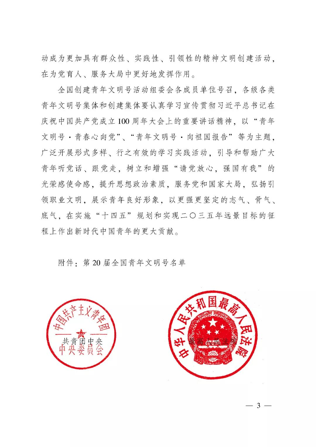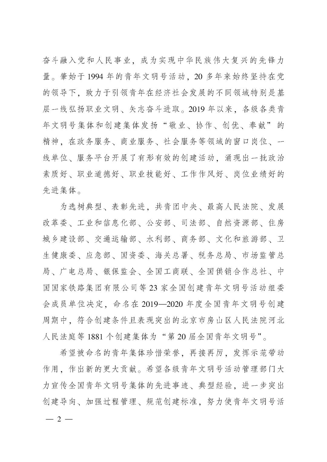 關(guān)于命名第20屆全國(guó)青年文明號(hào)的決定