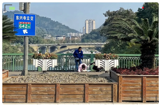 當途經(jīng)簸米灣大橋時,他注意到,一名女孩正坐在大橋中央的護欄上,面向釜溪河,身體搖搖欲墜,似乎有輕生的念頭。
