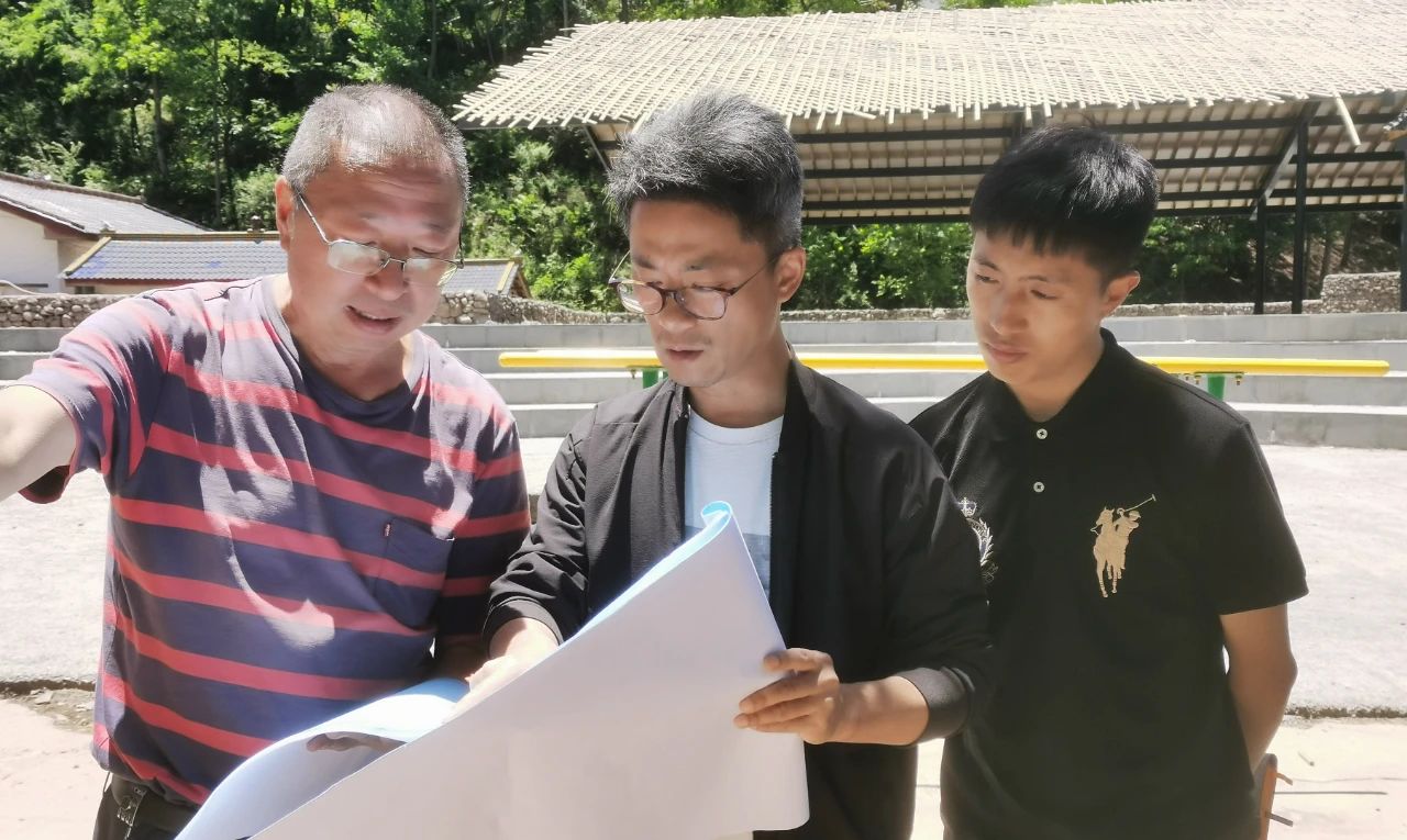 東方電氣集團(tuán)派駐昭覺縣特布洛村駐村第一書記肖飛與幫扶工作小組隊(duì)員一起研究村容村貌升級(jí)改造