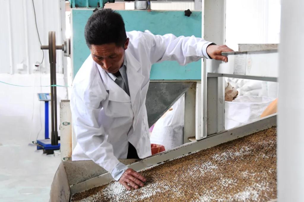 清晨的特布洛村,青山滴翠、空氣清新,潺潺的溪水聲、悅耳的鳥鳴聲,與一座現(xiàn)代化苦蕎加工車間發(fā)出的機器聲交織,奏響新一天的奮進樂章。