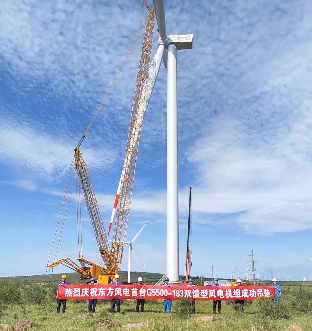 ?首臺G5500-183雙饋型風電機組完成吊裝