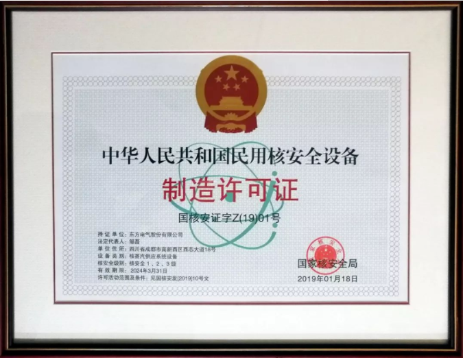 構(gòu)建核電完整產(chǎn)業(yè)鏈,打造核電設(shè)備成套供貨能力是東方電氣人的矢志追求。2019年1月21日,國家核安全局向東方電氣集團頒發(fā)了全國首張核蒸汽供應(yīng)系統(tǒng)設(shè)備制造許可證,標(biāo)志著東方電氣集團成為國內(nèi)首家具有核蒸汽供應(yīng)系統(tǒng)設(shè)備成套供貨資質(zhì)的裝備制造集團。至此,經(jīng)過十年努力、五年試點,東方電氣核蒸汽供應(yīng)系統(tǒng)設(shè)備成套供貨許可取證工作圓滿完成。東方電氣集團以此為新起點,充分發(fā)揮成套供貨優(yōu)勢,嚴(yán)格遵守核安全法規(guī),切實強化核安全文化意識,不斷優(yōu)化管理模式,持續(xù)設(shè)計制造能力和水平。
