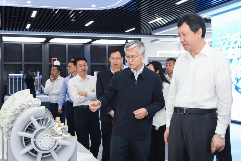 在張彥軍的陪同下,靳國衛(wèi)一行參觀了東方電氣科技展示廳,深入了解了東方電氣集團的發(fā)展歷程、產(chǎn)業(yè)格局、裝備制造、綠色低碳發(fā)展等情況。