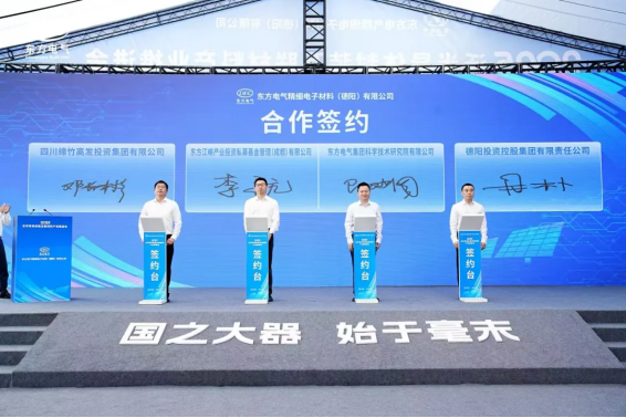 會上,東方精材分別與無錫帝科、杭州華光簽訂合作協(xié)議,綿竹市政府與東方研究院簽署合作協(xié)議,東方江峽產(chǎn)業(yè)投資、德陽投資控股集團、四川綿竹高發(fā)投資集團、東方研究院簽訂合作協(xié)議,江蘇瀚思瑞與四川綿竹高新技術產(chǎn)業(yè)園區(qū)簽訂合作協(xié)議。