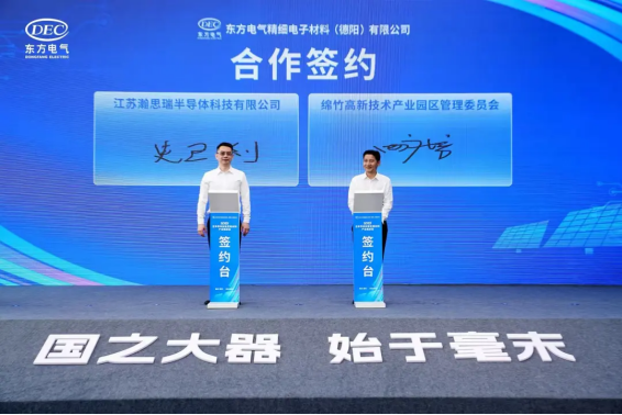 東方電氣集團總經(jīng)理、黨組副書記張彥軍,德陽市委書記劉光強,中國電子商會會長王寧,東方電氣集團總經(jīng)理助理、股份公司副總裁胡修奎,德陽市委常委、常務副市長李江波,德陽市副市長、綿竹市委書記王宏,綿竹市委副書記、代理市長潘鵬,清華大學、浙江大學、四川大學、華潤微電子控股有限公司、無錫帝科電子材料股份有限公司、杭州華光焊接新材料股份有限公司、福建省福東科技集團有限公司、廣州市儒興科技股份有限公司、株洲中車時代半導體有限公司、隆基綠能科技股份有限公司、英特爾產(chǎn)品(成都)有限公司、蘇州創(chuàng)印電子科技有限公司、德陽投資控股集團有限責任公司、四川綿竹高發(fā)投資集團有限公司等相關領導專家出席大會。