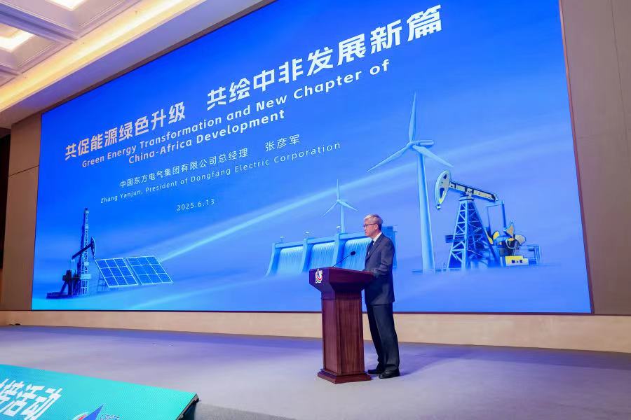 6月13日,以“綠色低碳 電‘靚’非洲”為主題的第四屆中國—非洲經(jīng)貿(mào)博覽會·中非電力與新能源發(fā)展合作交流對接活動在湖南岳陽舉行。來自坦桑尼亞、贊比亞、津巴布韋等14個非洲國家的100多名外賓、80多家中非企業(yè)及金融機(jī)構(gòu)參加活動。東方電氣集團(tuán)總經(jīng)理、黨組副書記張彥軍應(yīng)邀出席活動并作《共促能源綠色升級,共繪中非發(fā)展新篇》專題分享。